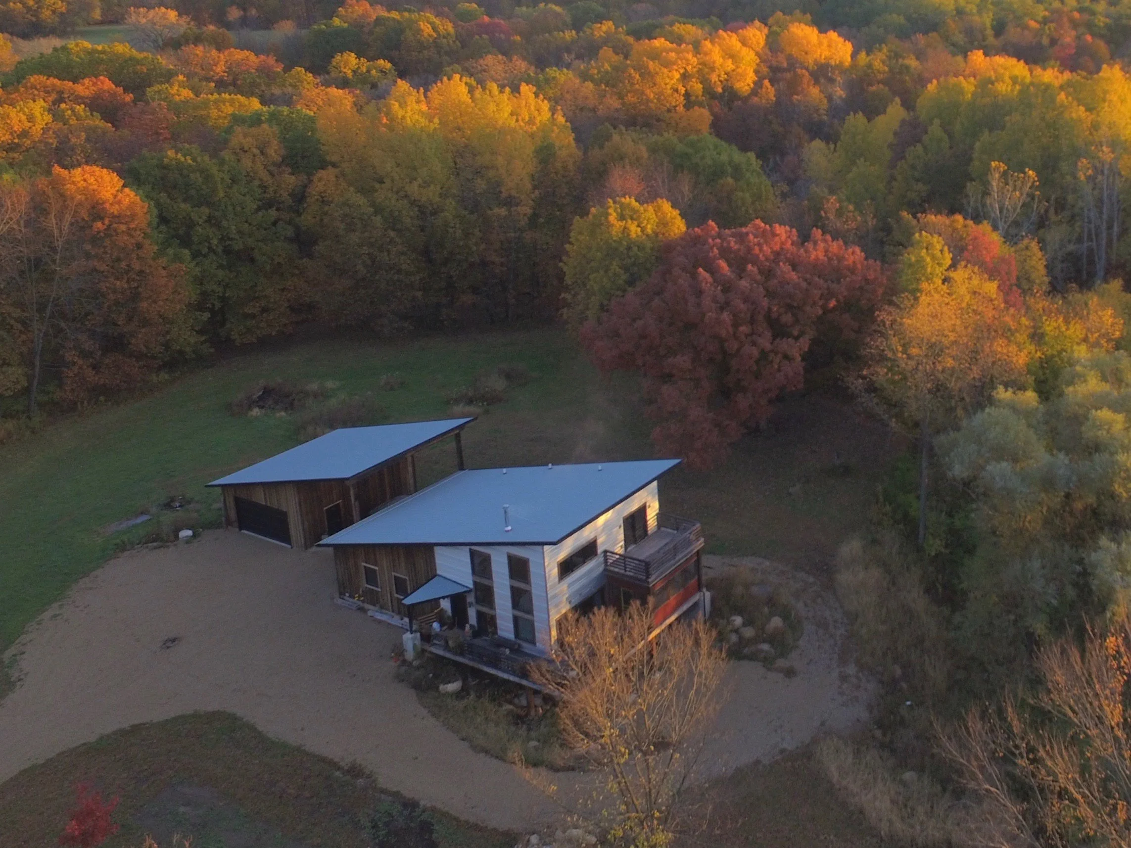 These young homeowners started the design process as a family of two and ended construction of their new home as a family of four. As their family grew, priorities changed and studioK was able to help them plan for the present and the future. Unique exterior building materials were researched and used to pay homage to the site as well as the client’s interests of harvesting wood from the site, reusing materials found in an old barn adjacent to the homesite, and his background in landscape design. The orientation of the home was essential in using the existing site features to enhance the features of the home. The open floor plan, mudroom, loft, and walkout basement were all designed for this family’s day to day life. The detached garage is visually connected and allows the owners to go from garage to house under roof. The mudroom is the first stop to remove muddy clothes and boots and even rinse off if need be before entering the home. The master bedroom was thoughtfully laid out to make a handmade headboard the visual focus on the interior and an old oak tree where the owners had their wedding photos taken on the exterior. The kitchen and living room offer views in 3 different directions to the exterior, taking in the front yard, side ravine, and backyard where the kids spend most of their time. The loft offers a reading nook and plant sanctuary to unwind and the screen porch and decks offer space to connect with the outdoors.